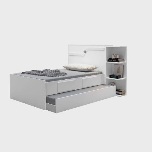 A coloração clean da Bicama Baú Solteiro Iris permite diversas combinações com os demais elementos do ambiente, tornando-a versátil e fácil de integrar em diferentes estilos de decoração. Além disso, a cama conta com três nichos na lateral da cabeceira, perfeitos para a exposição de objetos decorativos, gavetas integradas no estrado para organização de pertences e um amplo baú na cabeceira com tampo de abrir, ideal para armazenar roupas de cama ou itens pessoais.